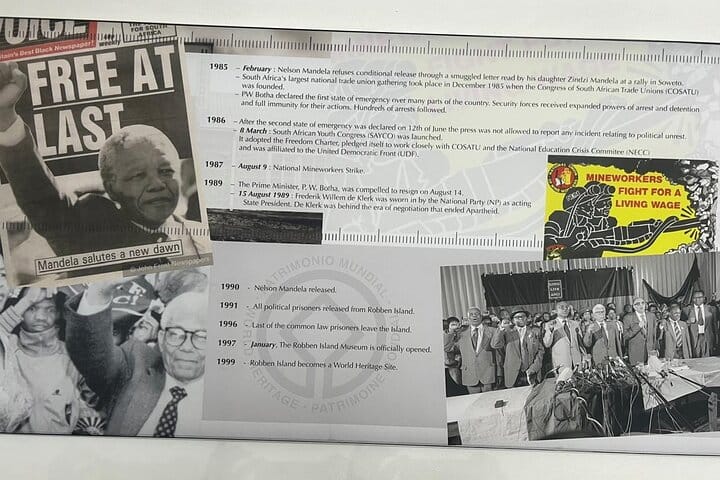 A Robben Island tour offers a deep dive into South Africa’s history , including Nelson Mandela’s prison cell , quarry where prisoners laboured, and powerful museum exhibits.