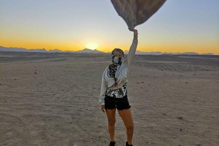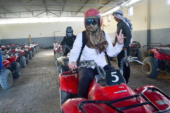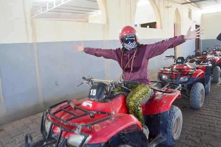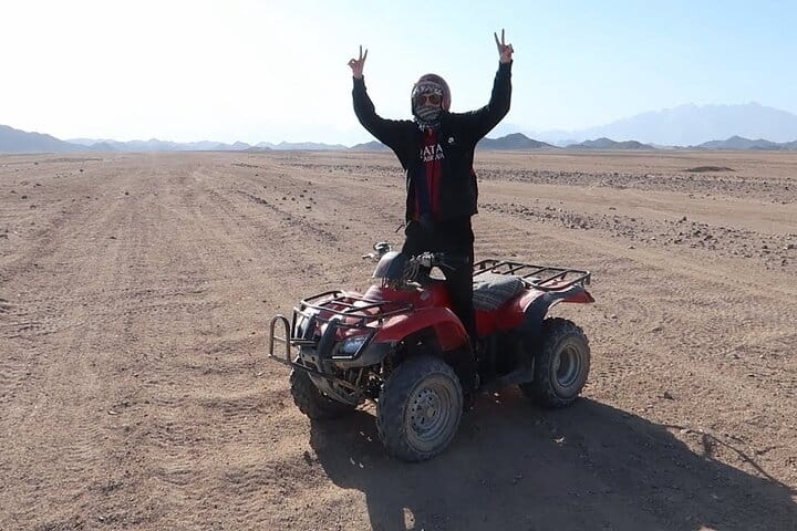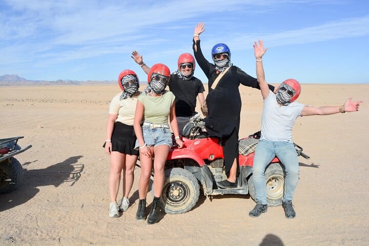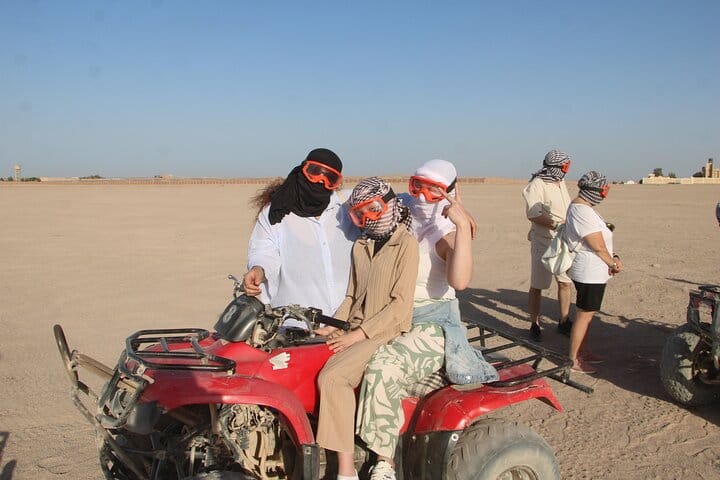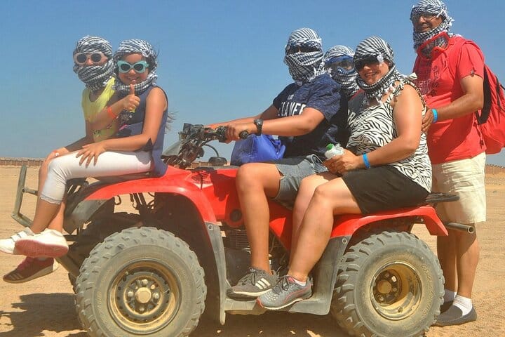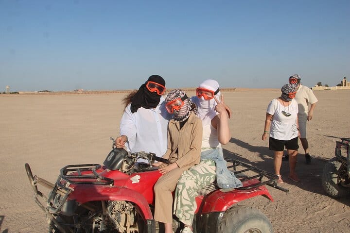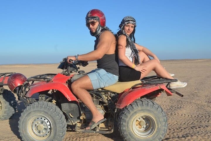 Experience the thrill of an ATV Quad tour in Hurghada, where you'll power across desert dunes to a Bedouin village 12 miles away. Enjoy traditional tea, ride a camel, and soak in the adventure before returning via ATV.
