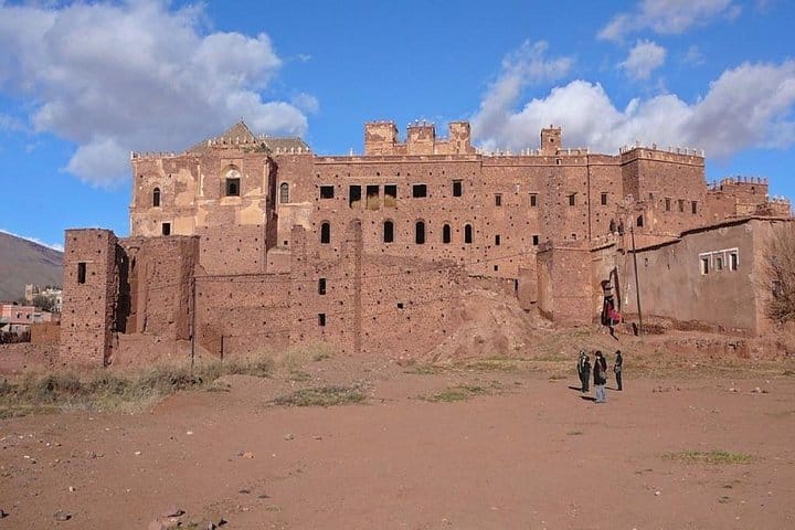 there's a beautiful hidden kasbah in the middle of the atlas mountains at elevation of (1800 m) Telouet Kasbah is a Kasbah along the former route of the caravans from the Sahara over the Atlas Mountains to Marrakech. The kasbah was the seat of the El Glaoui family's power, thus sometimes also called the Palace of Glaoui. Its construction started in 1860 and it was further expanded in later years.