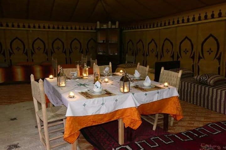 If you wake up early enough, you can see the magic sunrise, when the color of the dunes and the play of shadow are awesome. Then take camel or 4x4 again for going back then meet your driver and go to enjoy the gnaoua music in Khamlia village.