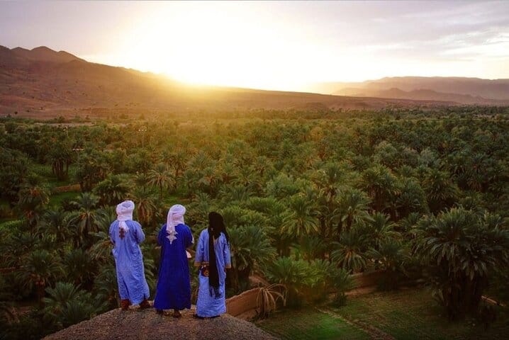 Rich in scenery, you will never be bored as you will be busy admiring one scene after another. on this 3 days adventurous desert tour from Marrakech to Merzouga. you will enjoy the scenic road, beautiful landscapes with different colors, and the Berber villages along the way. you will enjoy the UNESCO site Kasbah of Ait ben Haddou and Taourirt kasbah in Ouarzazate. then continue through the oasis, palm groves, and the gorges, we will cross the valleys and dry rives to reach Merzouga to enjoy a camel trek for a beautiful sunset over the sand dunes experience and overnight in a desert camp under the stars while enjoying a traditional Moroccan dinner.