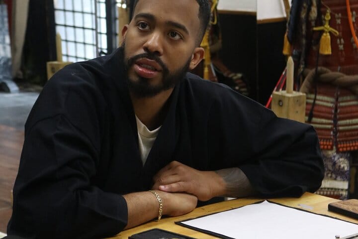➤The "◯" is written boldly to the beat of the taiko drums.