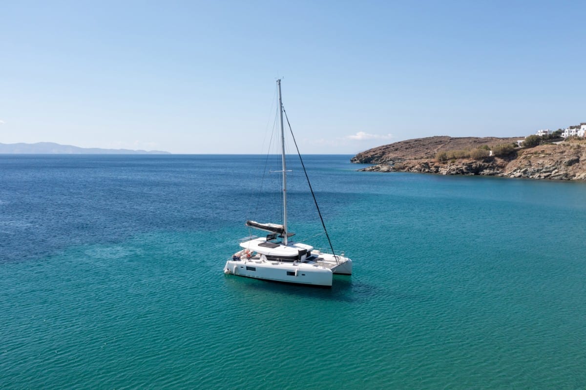 Step aboard our catamaran with Santorini Yachting Cruises, and join us for an incredible sailing adventure! Our Santorini day cruise sets sail from the picturesque port of Vlychada at 10:00am, weaving through the Aegean Sea with a first glimpse of the striking Red Beach, setting the stage for an exhilarating swim. As we navigate past the White Beach, the Indian Rocks and the iconic Venetian Lighthouse, our Sailing voyage unfolds.