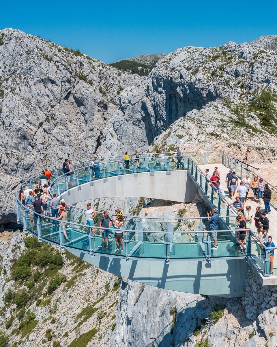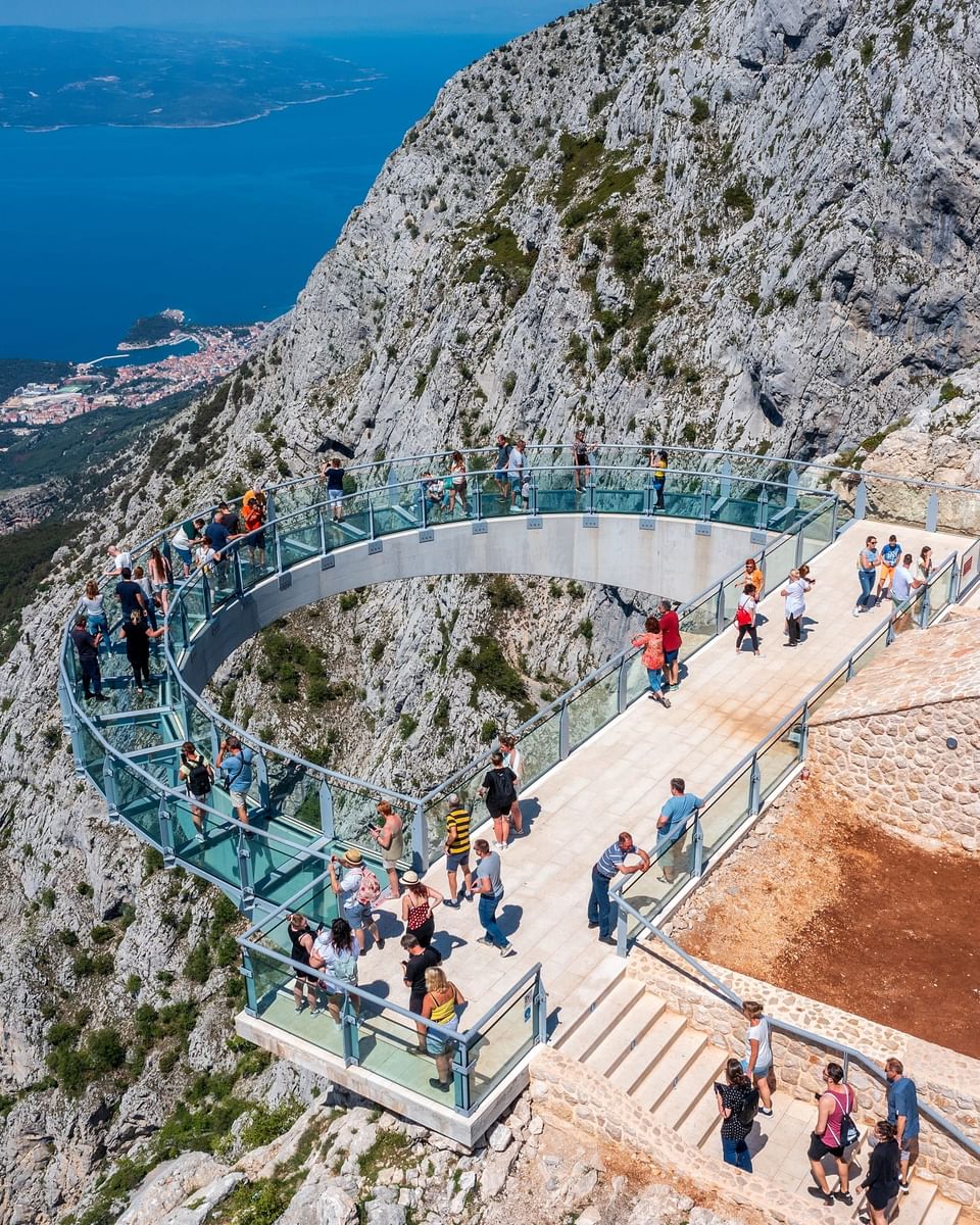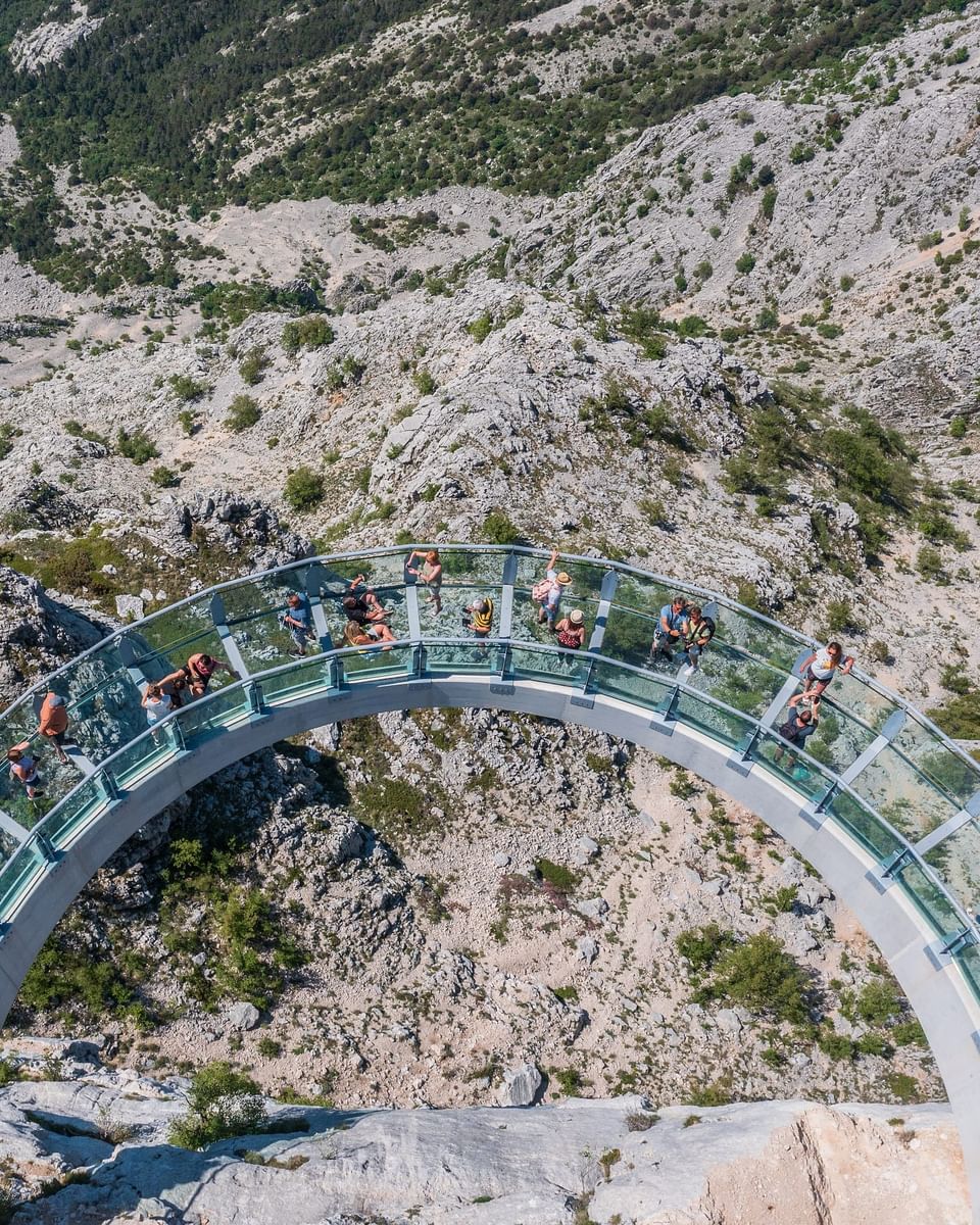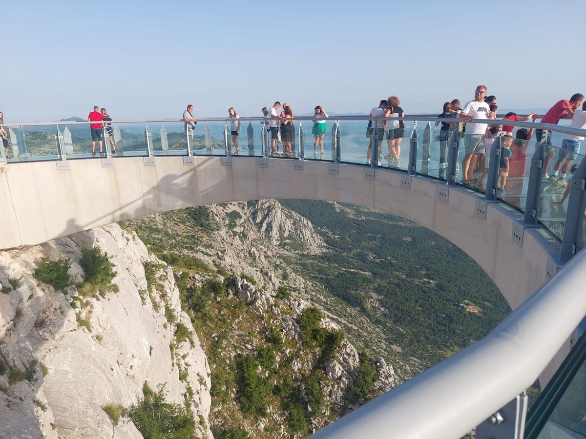 The highlight of your cliff view adventure awaits at the Skywalk Biokovo, a thrilling experience allows you to walk along a suspended glass platform perched high above the stunning Biokovo range, offering some of the most breathtaking views in Croatia. As you take in the panoramic sights, you’ll have the opportunity to snap some amazing photos and appreciate the majesty of nature that surrounds you. After a memorable day filled with adventure and exploration, your return transfer to Split awaits, ensuring a comfortable journey back to the port. You’ll disembark with lasting memories of an incredible day spent in the heart of Dalmatia.