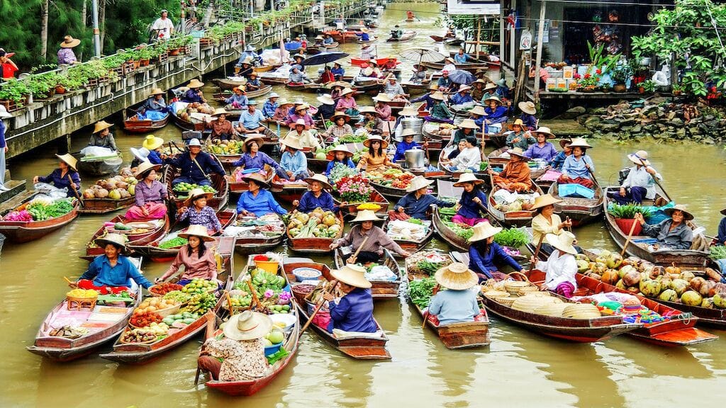 In the past, daily commerce in Thailand was conducted mostly along its river and canals. The water networks were busy as locals came to eat and farmers sold their wares. It is not surprising that this different lifestyle would attract many foreign tourists eager to experience this special atmosphere. Over the past 100 years or so, tourism and general modernisation has seen many floating markets disappear altogether. Some remain, but are usually only able to provide a glimpse of the past.