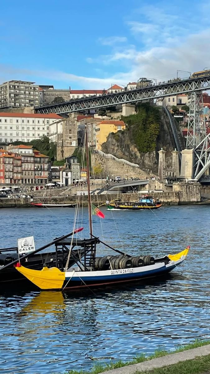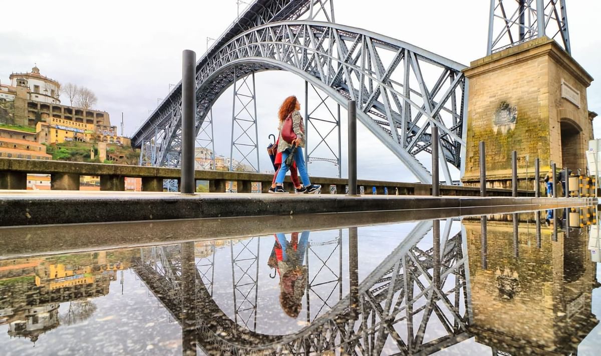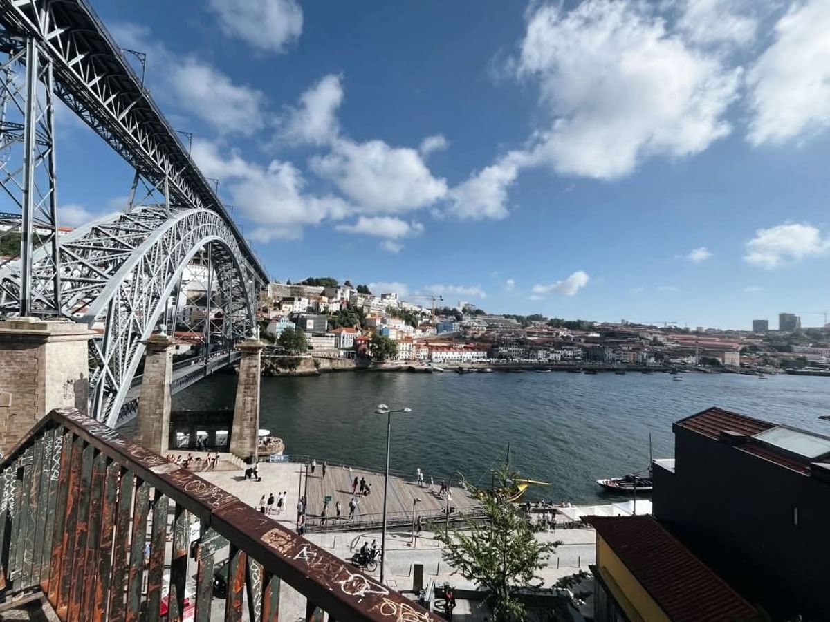 Passeio pela zona ribeirinha, seguida da travessia da ponte com vista cinematográfica sobre o Douro.