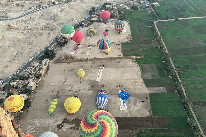 Enjoy a shared sunrise hot air balloon flight over Luxor’s West Bank.