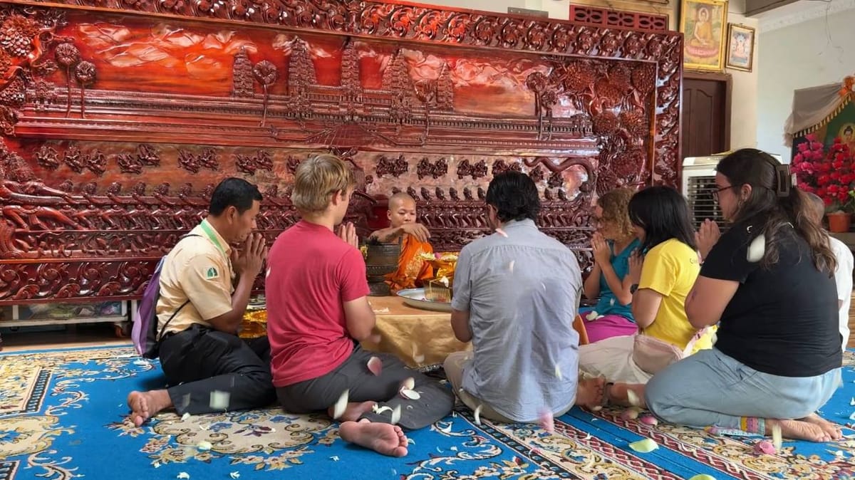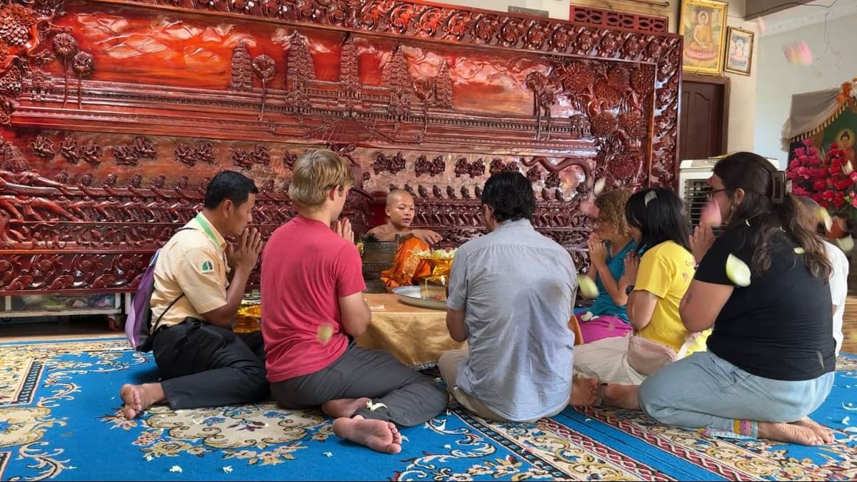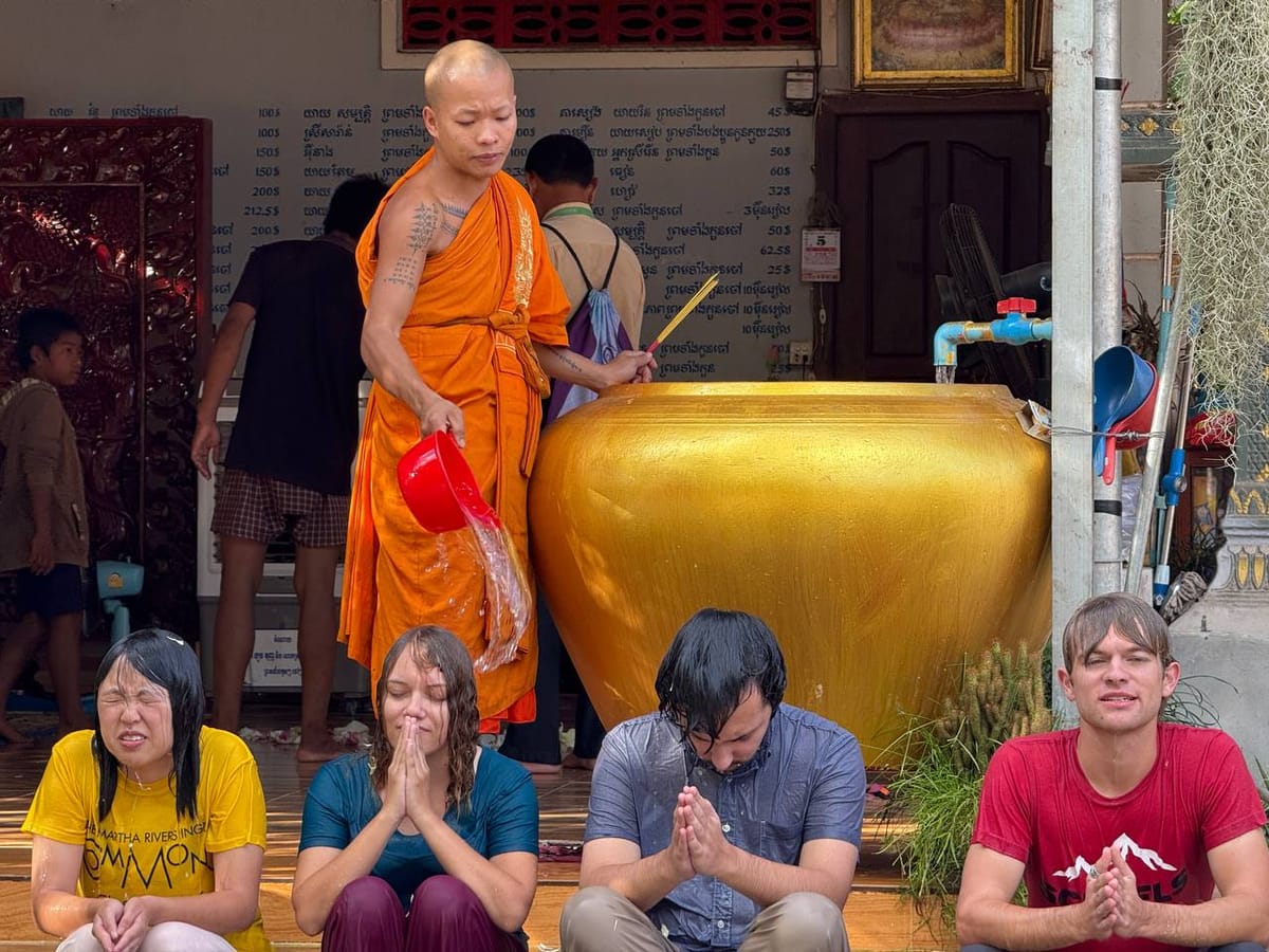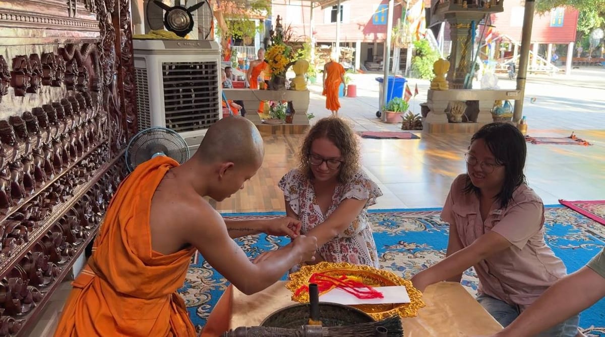 Inside the monastery, you will take part in a traditional Cambodian water blessing ceremony. The monks perform two forms of blessings: