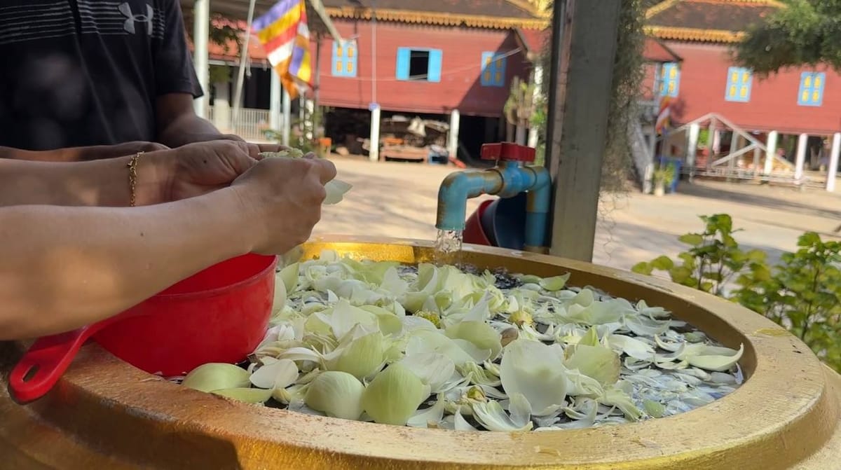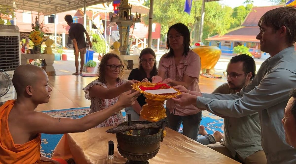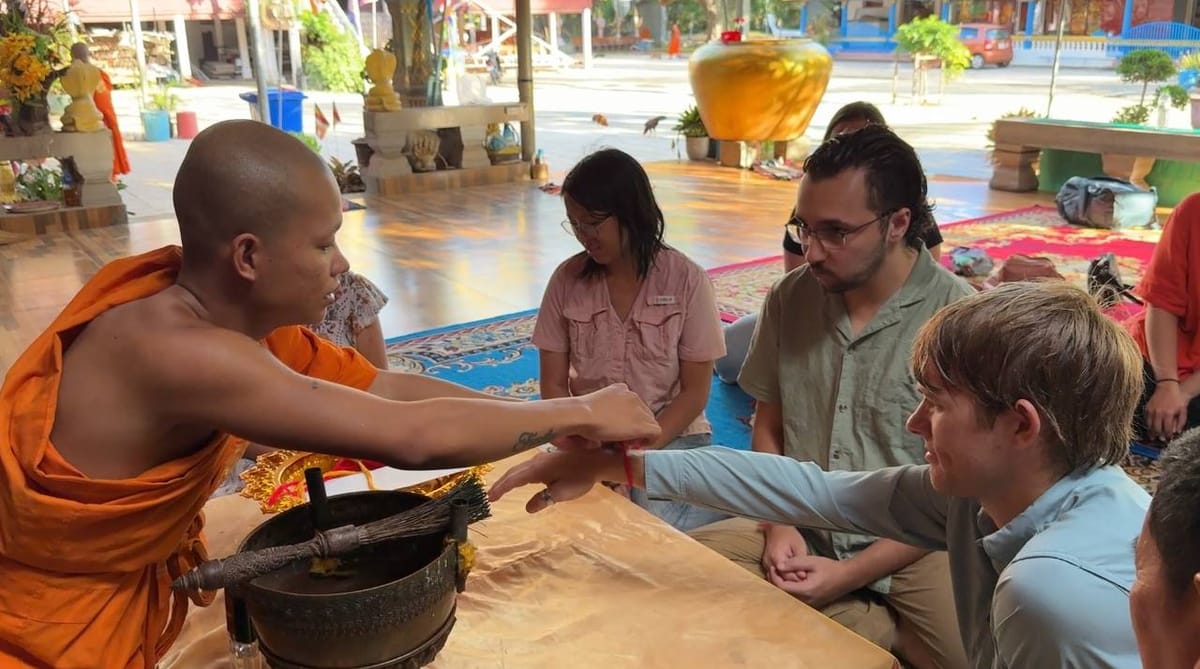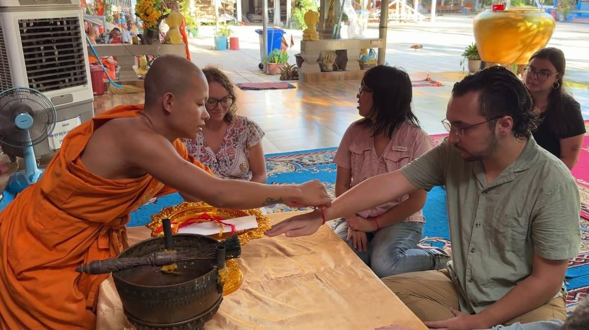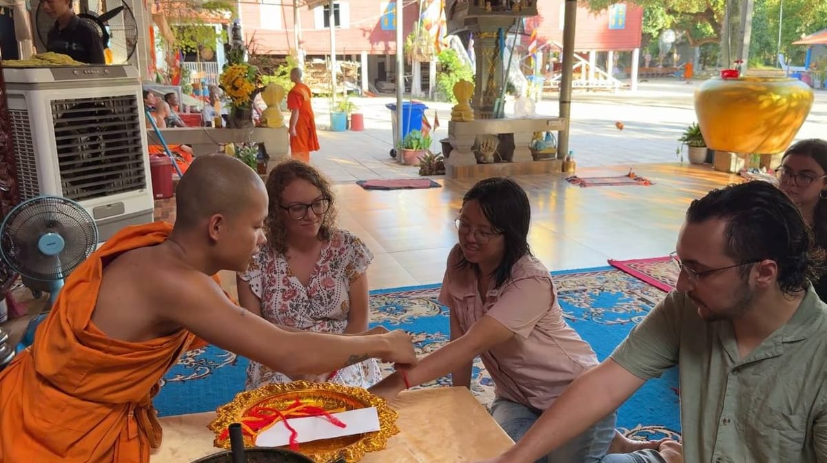 Inside the monastery, you will take part in a traditional Cambodian water blessing ceremony. The monks perform two forms of blessings: