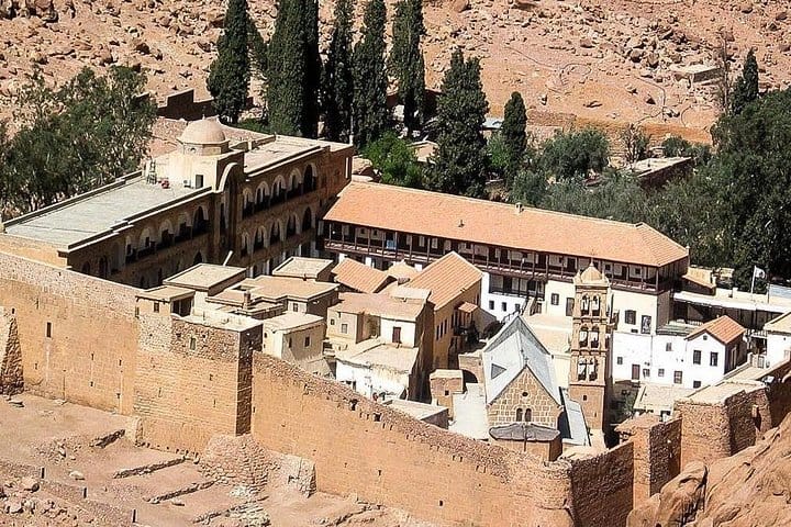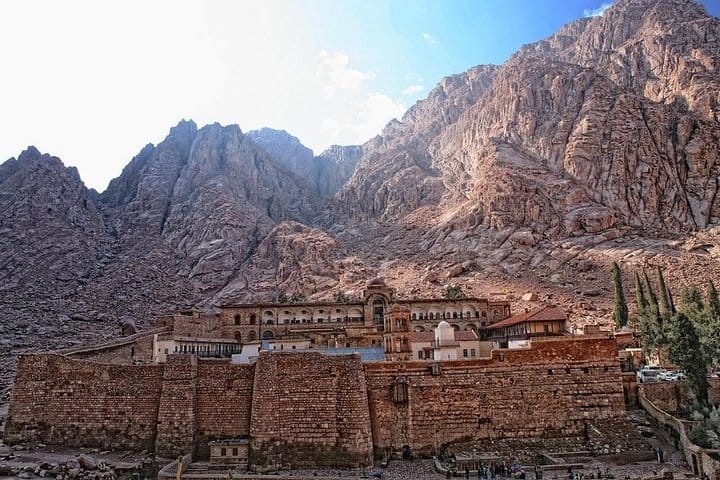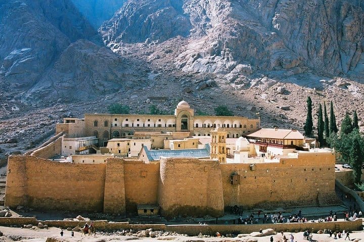 Discover the highlights of Sinai desert by a modern jeep. You will be transferred to Saint Catherine Monastery which is located in the heart of Sinai Peninsula at a height of 1570 meters. According to the tradition, God appeared to Moses in the Burning Bush whose summit witnessed the receipt of the Moses received the tables of the law with the Ten Commandments inscribed. The monastery dates back to the 6th century, the age of the Great Roman Emperor, Justinian I. The Great enclosure walls surrounding the Monastery were built back then and are still existent.