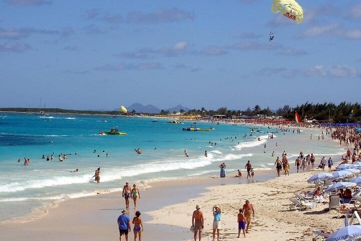 Join us on a family friendly, multi-generational ultimate island and beach excursion, perfectly blending relaxation in paradise to culture adventure. Bask in the sea and sun with our local’s choice of top 3 beach gems, illuminating the islands marvels.For your first beach discovery, over to the famous Mullet Bay Beach, delivering pristine crystallized beach and spectacular view of the possible landing planes. Experience the oasis or simply relax in the paradise’s tranquilities at this family friendly beach. During your 45 minutes of free time feel free to explore the beautiful oceans treasures. At the beach you may also have time for sunning and dancing if you wish, at the local beach restaurant/bar.Next, to on old town on the water, in the European Country of French St/ Martin for lunch at the boardwalk & beach in Grande Case, an appealing island city with brightly colored houses, a scattering of restaurants and lively produce and crafts markets. There, enjoy a traditional local Barbeque lunch at Lolos on the market. The island favors melt in your mouth, with your choice of chicken or fish with rice or fries, and salad, and take a nip in the calm, children friendly beach oasis.On to the next beach Friars Bay Beach, a local treasure offering aqua blue waves rolling in at your feet, known for its stunning waters, and endlines white sanded beach. There, enjoy 45 minutes of free time to soak in the sun, take in the culture and charm while you take a refreshing dip in the waters.Savor the moment, as you are serenaded with traditional island music and plush green surroundings, delivering the tropical experience of a sea and sun dream!