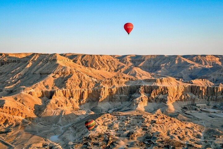 Full-day adventure in Luxor, beginning with an early morning pick-up (around 4:30 AM) from your hotel or Nile Cruise. Your journey commences with a serene motorboat ride across the tranquil River Nile to the West Bank, setting the scene for a magical hot-air balloon experience.
