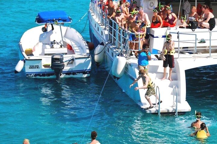 Following pickup at your hotel, arrive at the location to meet your friendly crew aboard a luxury catamaran. Order up a drink from the open bar and find a spot to relax on the sundeck while enjoying the reggae music playing over the boat's speakers. The catamaran will stop at a snorkel spot so you can explore the island's underwater attractions. Slip on the provided mask, fins and snorkel and dive into the calm water. Swim among live coral and groups of brightly-colored tropical fish. The boat will sail on to the village of Negril, where the Negril Marine Park offers more opportunities to snorkel among coral reefs and mangrove forests.