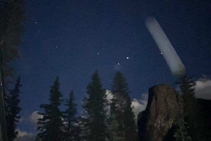 - 5: Travel Alberta Canmore Visitor Information Centre (2801 Bow Valley Trail, Canmore, AB T1W 3A2) 17:00: Banff Caribou Hotel, 521 Banff Ave Departure times vary daily based on the sunset time. We will contact you the day before to confirm the final departure time.