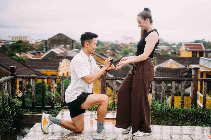 Hoi An is a beautiful wedding photography location. You can propose on the riverbank at sunset with sparkling lanterns, or on the highest cafe in Hoi An, where you can enjoy panoramic views of the area. I am a photographer specializing in wedding, proposal and honeymoon photography with over 10 years of experience. I'm always there at the right time so I don't miss a single moment. In addition, after proposing, I will take you around the old town to take beautiful photos here. You can also have short videos while I take photos. We hope to be of service to you