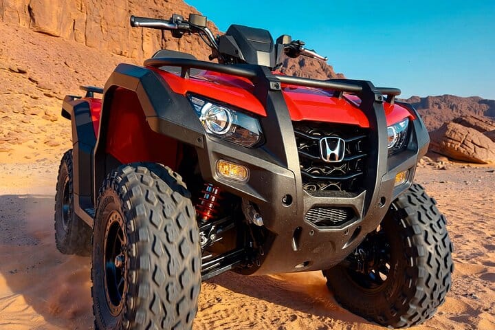 Explore the Magic of Red Sea Desert by Quad bike tour from Sharm El Sheikh. Relax, drink Bedouin tea, and experience the Bedouin lifestyle before heading back through the sand dunes to the starting point.