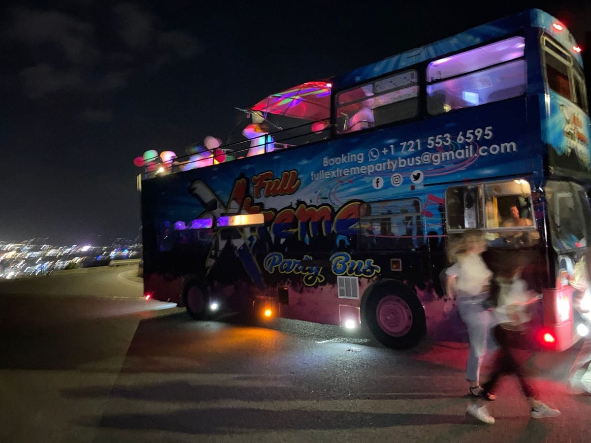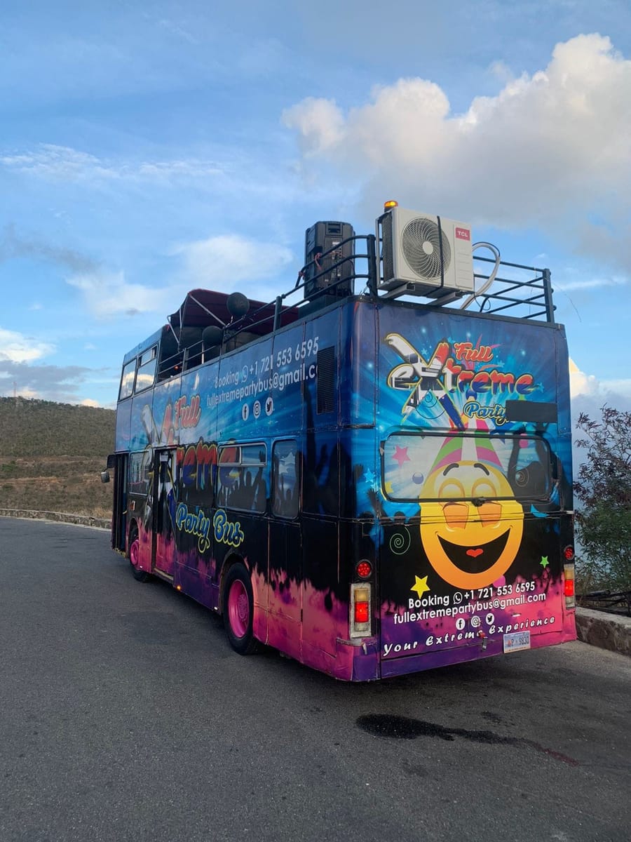 Get ready for the Ultimate Party Bus Tour, the most exciting way to explore the vibrant French and Dutch sides of St. Maarten! This thrilling journey combines stunning scenic views, local sites, beach stop, and a lively party atmosphere. Hop on our open-top party bus equipped with all the amenities you need for an unforgettable experience.Explore both sides of the island on a scenic tour visiting the charming French side boasting of  its picturesque villages, chic boutiques, and beautiful beaches, not forgetting the lively Dutch side known for its bustling nightlife, duty-free shopping, and vibrant culture. Enjoy breathtaking 360-degree views of the island’s lush landscapes, crystal-clear waters, and iconic landmarks. Soak up the sun or relax in the shade on our comfortable open-top party bus while visiting some of the island's best sites each offering a unique vibe including Maho beach, the infamous flag pole and more.On you beach stop, be welcomed at Maho beach/ Sunset Refuge adjacent from the airport, famous for seeing the planes fly in from a close distance over you heads and the aqua blue waves of the Atlantic rolling in at your feet. Take a dip in the ocean and lounge on the beach during your 30 minutes free time.Onboard the party continues with unlimited drinks on the bus featuring a selection of standard alcohol, Caribbean rum punches, beers, soft drinks, coupled with savor delicious local snacks including Caribbean favorite finger foods. Our onboard bartender will keep the drinks and snacks flowing ensuring everyone has a great time.Groove to the rhythm of Caribbean music, from reggae to soca, played by our onboard DJ, as you dance the day away with fellow partygoers and enjoy the festive atmosphere. Engage in fun games as our energetic hosts ensure that everyone is having a blast, providing entertainment and keeping the party vibe alive.The party Bus is equipped with all amenities necessary for onboard Comfort, with clean and convenient bathrooms and shaded areas if you need a break from the sun.Join us for the Ultimate Party Bus Tour and experience the best of St. Maarten’s French and Dutch sides in the most exciting way possible. With stunning views, local sites, beach fun, and nonstop entertainment, this tour promises a day filled with laughter, music, and unforgettable memories for adults.