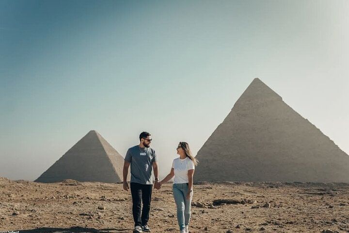 Our driver will pick you up from your location to Giza and there you will meet our private guide who will take you on an unforgettable journey to see the three great pyramids of Giza, then the driver will take you to the second distination "Saqqara" where you will see the first full pyramid, after you will go to Memphis where you will visit the open air museum for king Ramses II and finally the driver will take you back to the location you choose.