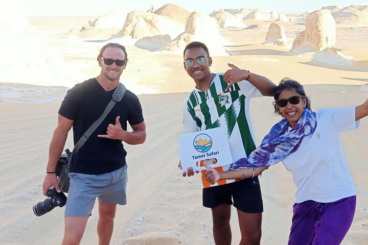 After we wake up , we have our breakfast then we resume our adventure exploring white desert, we pass by aqapat desert way area then we enjoy crossing karaween dunes reaching the magic spring where we will have our lunch, after lunch we continue our trip to the new white desert with all its lovely limestone formations , then by sun set time we find a nice spot to make our camp for dinner and spending the night .