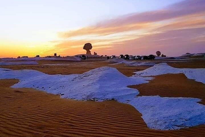 After breakfast we drive to explore more in new white desert in our way to visit the old white desert ( tents area) then the Acacia tree after that reaching the green spring also a spring from the roman time, we have our lunch and little rest then we drive to make our camp in the tents area, make our camp dinner and spend the night.
