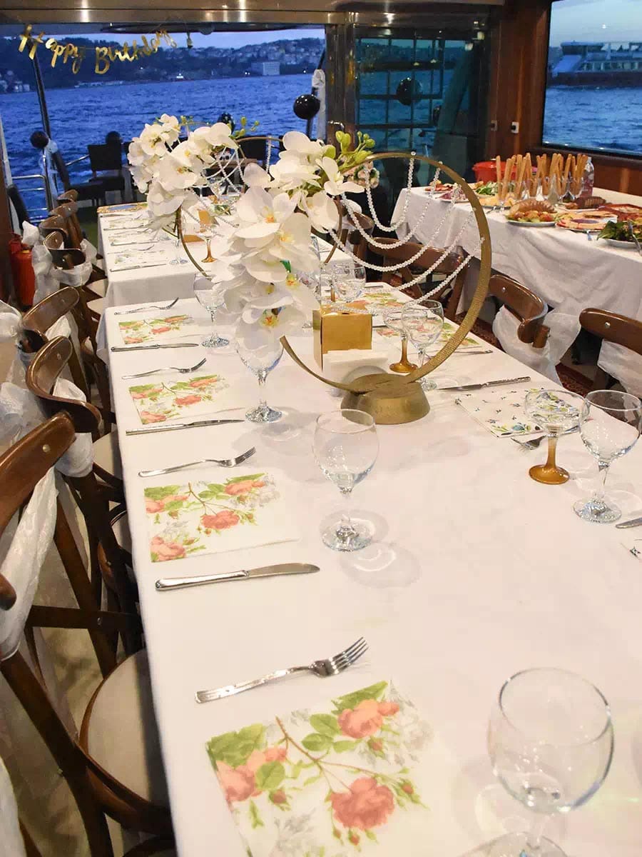 If you want a themed celebration, our experienced event planners will help you design a concept your guests will remember for a lifetime. From elegant sunset parties to vibrant nightlife-style events, we transform your party boat for birthday into a floating celebration venue.We also offer optional VIP transfer services, making it easy and stress-free for you and your guests to arrive in style.Rent a Boat for Birthday Party in IstanbulLooking to rent a boat for a birthday party in Istanbul? Bosphorus Sunset offers premium yachts equipped with spacious decks, comfortable indoor lounges, sound systems, and stylish seating areas. Whether you are planning a daytime cruise or a sunset celebration, our birthday yacht rental options are perfect for every season and group size.A boat rental birthday experience on the Bosphorus combines luxury, privacy, and breathtaking views — a unique alternative to traditional birthday venues.Why Choose Bosphorus Sunset?Professional event planning team