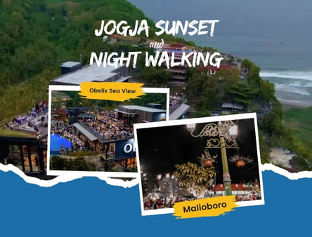Join us for a captivating half-day tour starting with the best sunset view at Obelix Sea View, where you'll have the perfect opportunity to take stunning photos of the sun setting over the ocean. Afterward, we’ll whisk you away to the vibrant streets of Malioboro to explore bustling markets, indulge in local street food, and experience the lively night scene of Yogyakarta’s most famous shopping street. This tour combines breathtaking natural beauty with a rich cultural experience, making for an unforgettable evening.