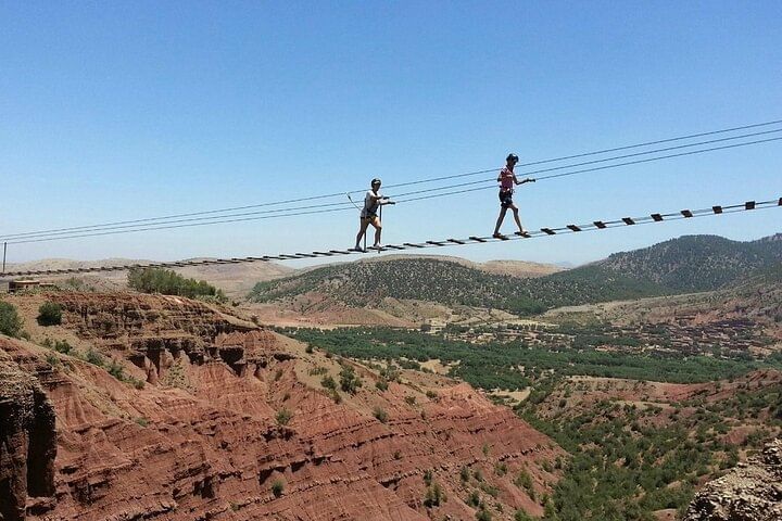 Soar above the stunning Atlas Mountains on a world-class zipline adventure at Terre d’Amanar. Guided by certified professionals, you'll glide securely over dramatic gorges and lush valleys on multiple cables. This exhilarating journey offers a unique, bird's-eye perspective of Morocco's breathtaking natural beauty, combining adrenaline-pumping thrills with unforgettable panoramic views for an unparalleled Marrakech day trip. And followed by visit to a traditional Argan oil cooperative, where you witness Berber women preserving ancient methods to produce Morocco's famous "liquid gold"—a genuine cultural encounter that supports local communities.