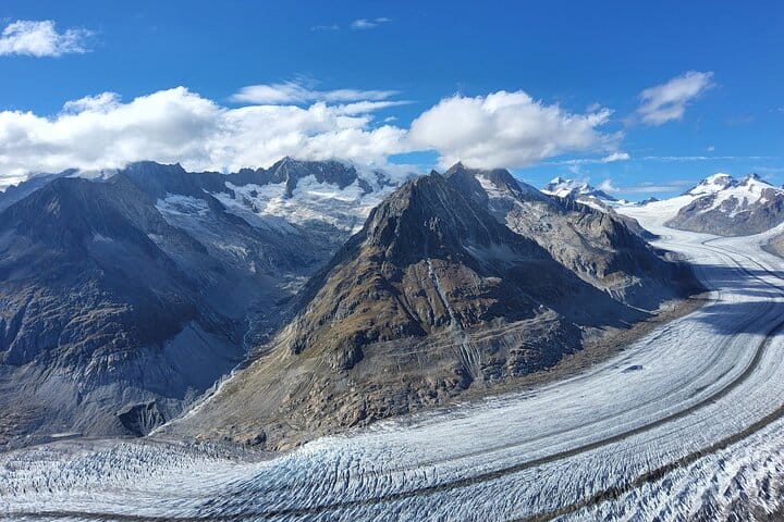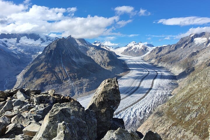 Discover the Aletsch Arena, home to the largest glacier in the Alps, on this full-day guided tour from Zurich. Travel through scenic landscapes by train and cable car, while enjoying expert commentary about this UNESCO-listed site.