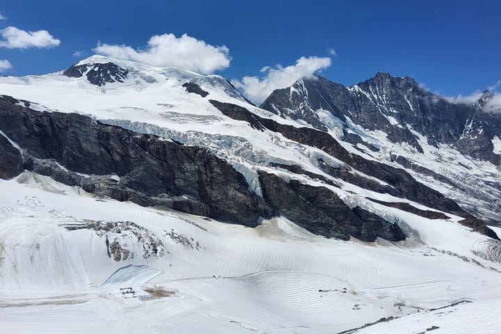 This tour begins with a scenic train and bus journey from Zurich Airport to Saas-Fee, showcasing stunning alpine landscapes along the way.
