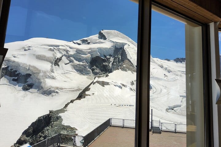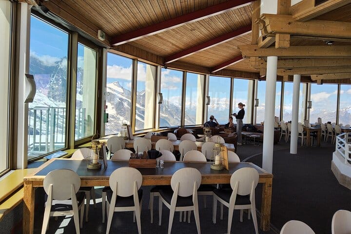 Official tour ends at Mittelallalin (3,500 m). Afterward, your train ticket lets you explore Switzerland freely until midnight.