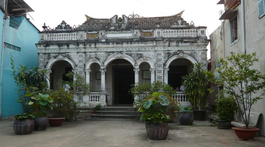 Mr. Huynh Cam Thuan, one of the richest Chinese merchants of Sa Dec, built this house in 1895. The original house grounds had about 2000 square meters, with the main building occupying about 258 square meters of this space. The original house used traditional Chinese and South Vietnamese architecture and wood as the construction’s primary material. There were other areas besides the main building, such as the kitchen, garden, and garage, which are now lost due to urbanization. It was located on the riverfront of Sa Dec, which was also very crowded and near a trading hub of the town.