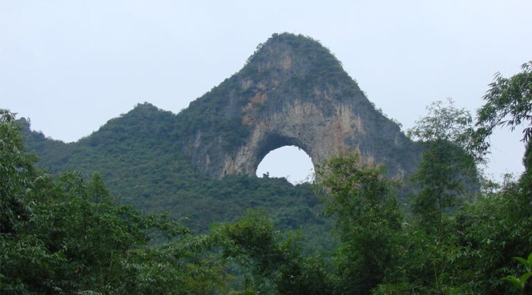 Moon Hill is a natural arch with a moon-shaped hole in its center located 8 km from Yangshuo on which, you can have a great panoramic view of town's karst hills