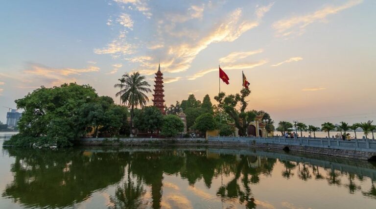 Tran Quoc Pagoda is the oldest temple in Vietnam dating back to over 1500 years ago during the rule of Emperor Ly Nam located on an island in the West Lake.