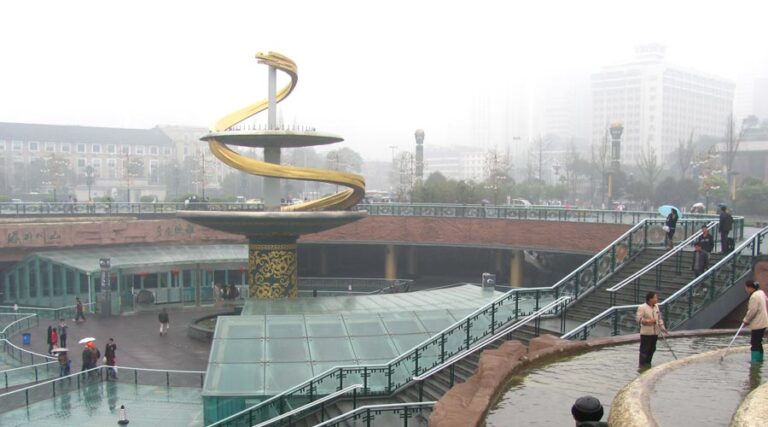 Tianfu Square is the largest square and the symbol of Chengdu, surrounded by many attractions such as the Chengdu Museum, Sichuan Art Gallery, and Chunxi Road.
