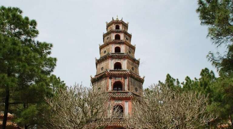 Thien Mu Pagoda, aka Linh Mu Pagoda, is a religious temple with a beautiful and ancient architecture located on the left bank of Huong River, Hue, Vietnam.